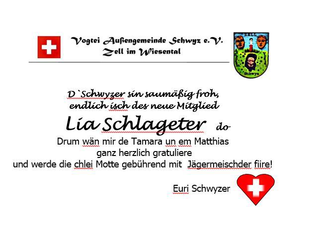 sich bei lieben und verdienten Schwyzern zu bedanken. Für 30-jährige Mitarbeit in der Vogtei wurden Lydia und Günther Karle unter dem gewaltigen Beifall der Versammlung zu Ehrenmitgliedern ernannt.