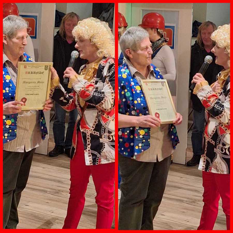 Absolut verdient wurde mit dem Kappenabend 2024 Margret Maier in den würdigen Stand eines Ehrenmitgliedes auf Lebenszeit ernannt.